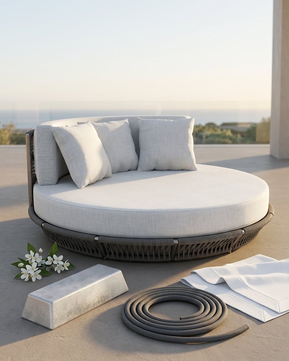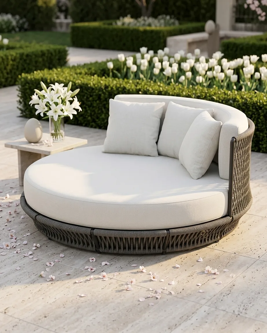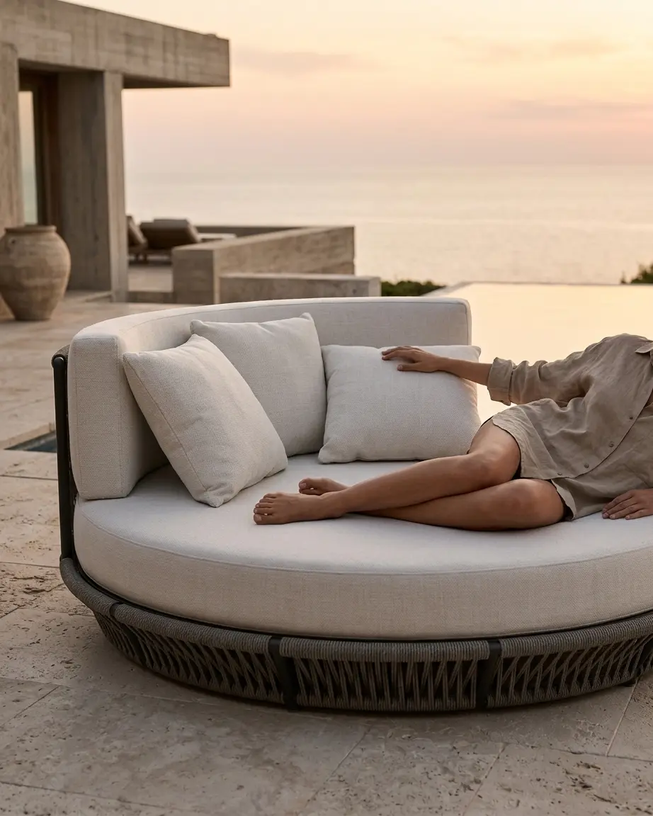 Experience ultimate outdoor comfort with this premium outdoor daybed by Craftnika, designed for luxury outdoor living. Featuring a spacious circular design and high-quality construction, this daybed offers a perfect blend of relaxation and modern aesthetics.