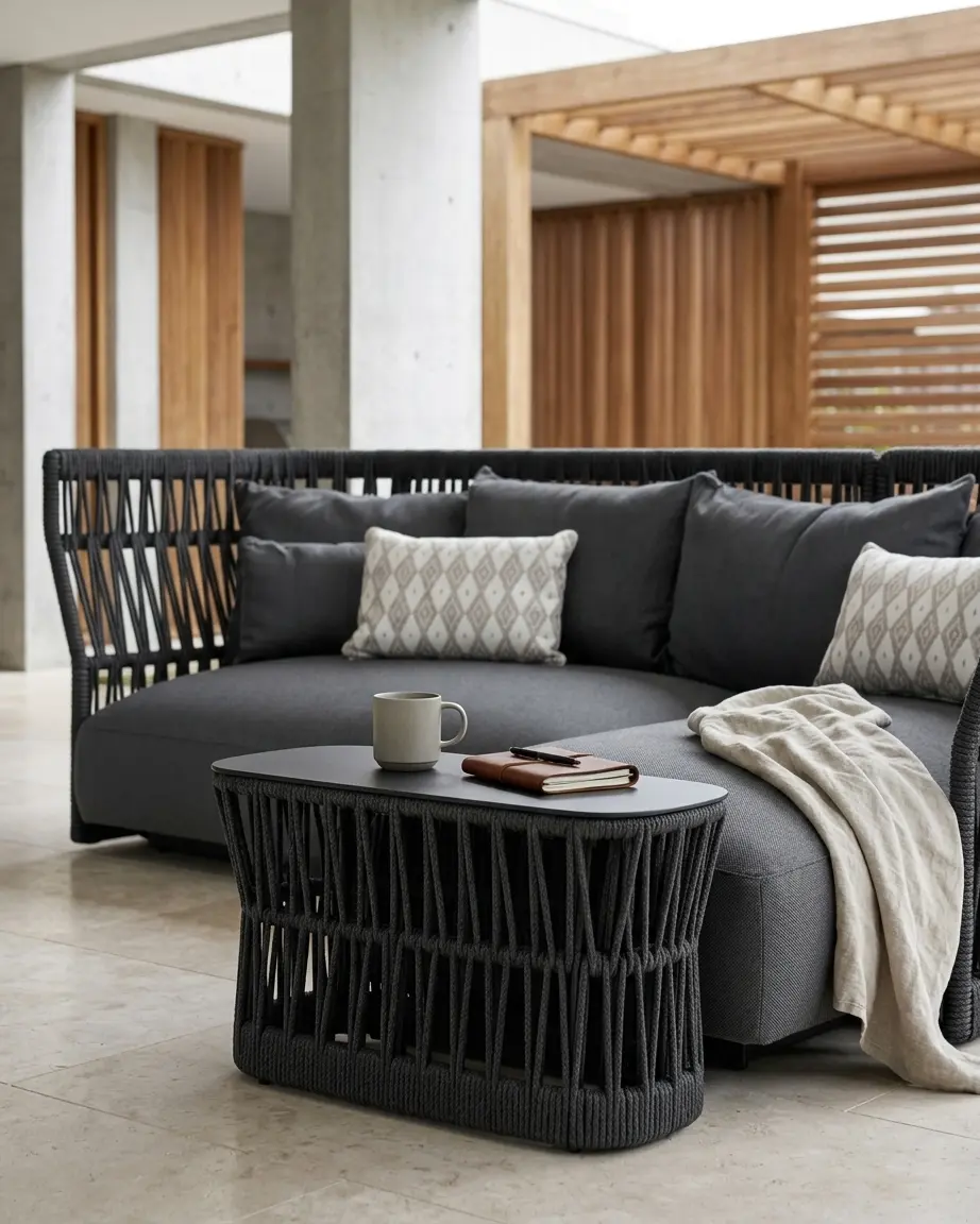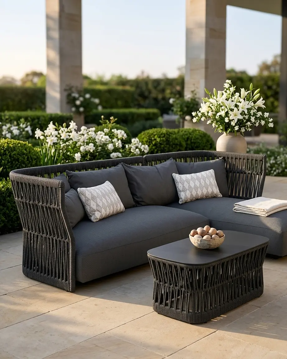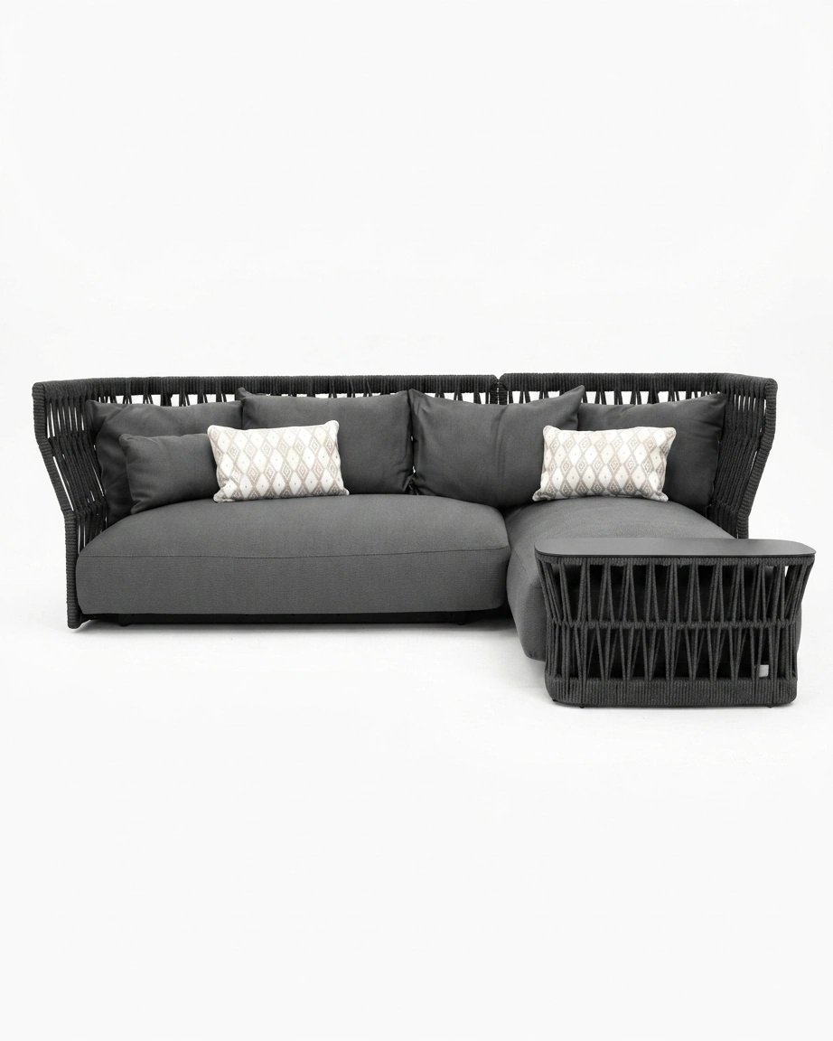 Upgrade your outdoor living with this premium outdoor sofa set by Craftnika, designed to deliver comfort, durability, and a refined modern aesthetic. Crafted with a rust-proof aluminium frame and detailed rope weaving, this set is built for long-lasting performance in outdoor environments.