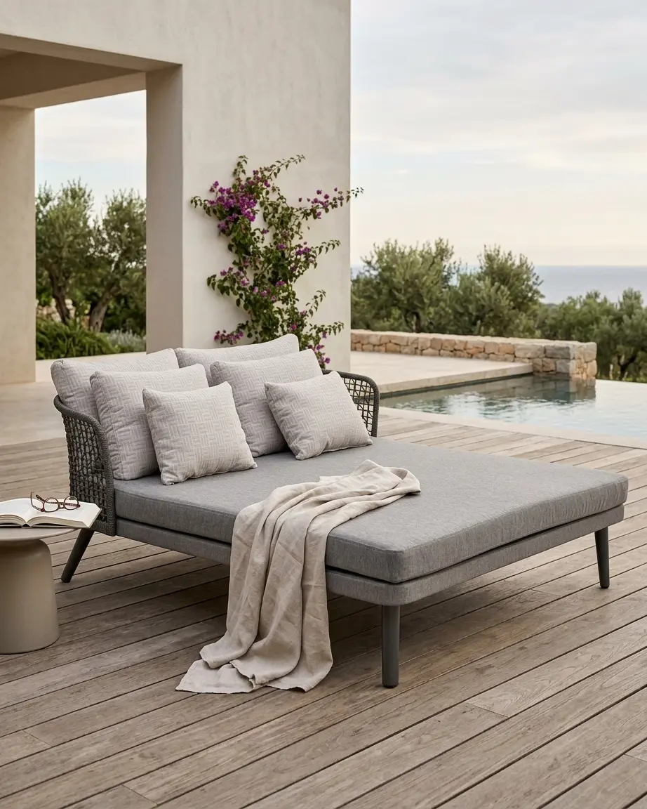 Ideal for patios, terraces, villas, and luxury outdoor projects, this outdoor daybed blends comfort with modern design, making it suitable for both residential and commercial environments.