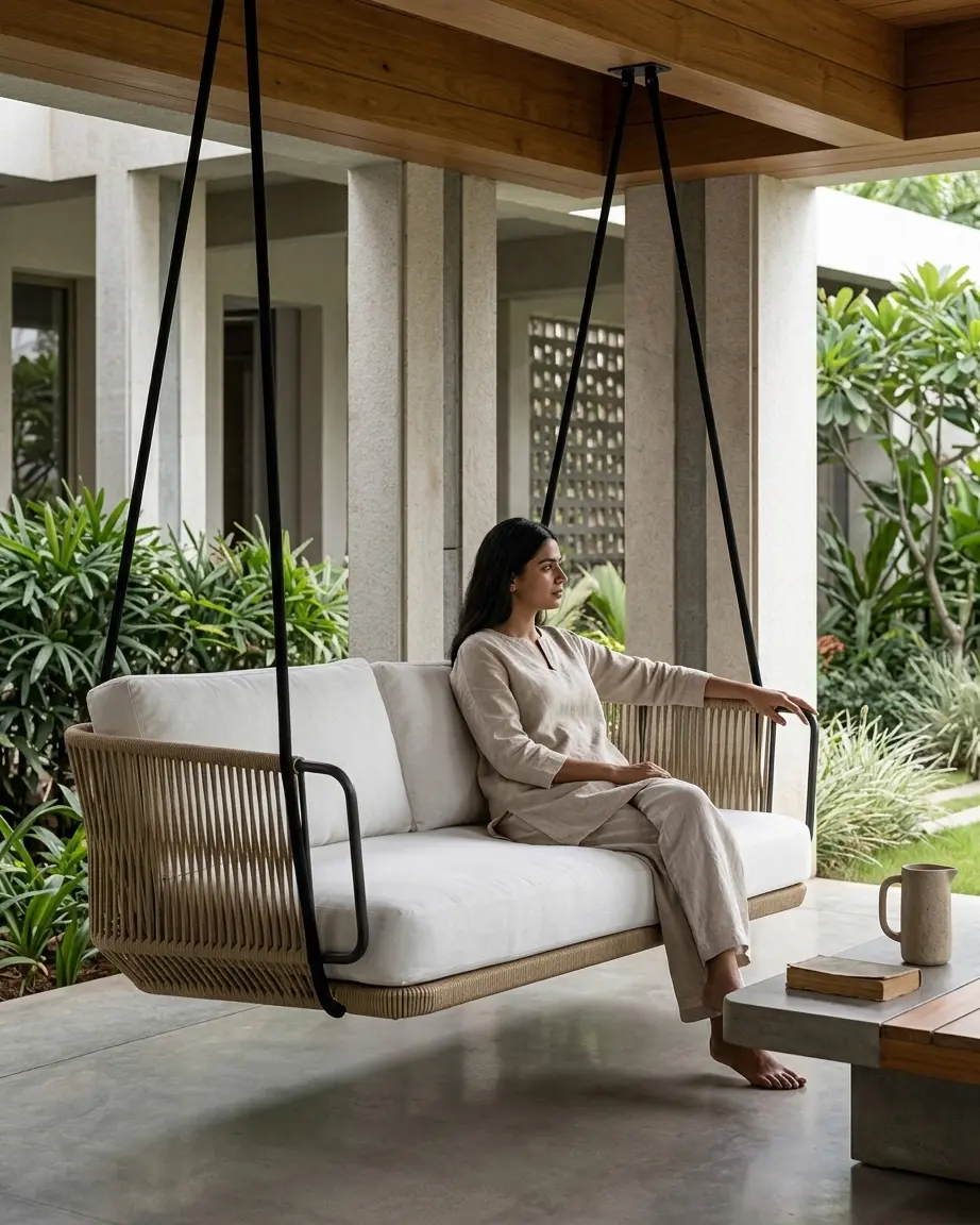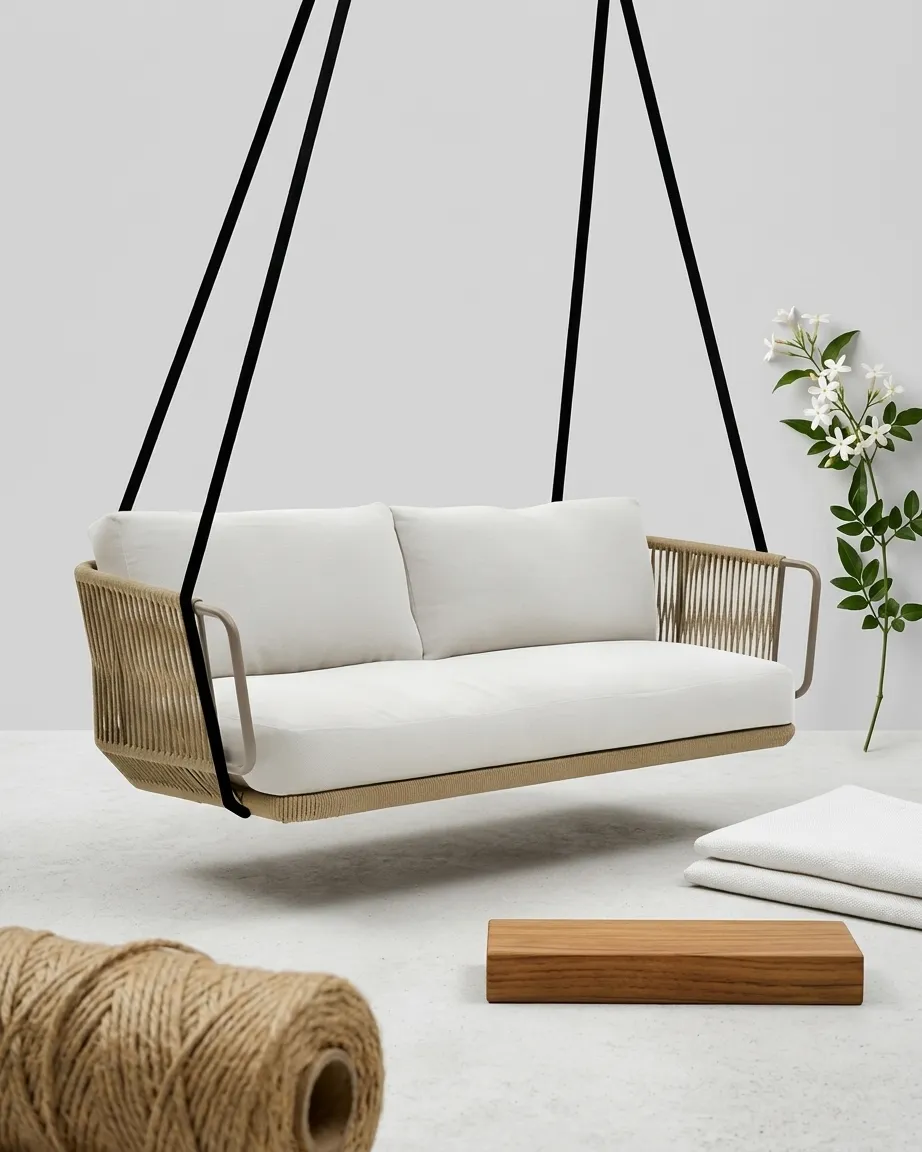 Perfect for patios, balconies, villas, hotels and resorts, this outdoor swing sofa enhances outdoor spaces with a premium and inviting look.